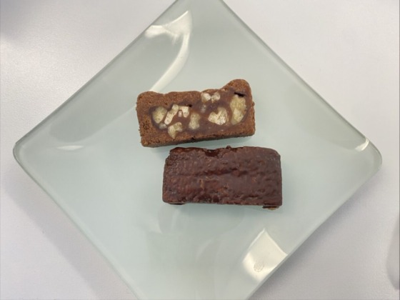 クッキー生地と、ヌガー部分が、カカオマス・ココアを使用した