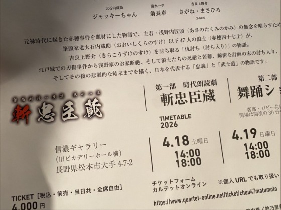 全国28公演を行ない、松本市の講演が千秋楽とのこと。